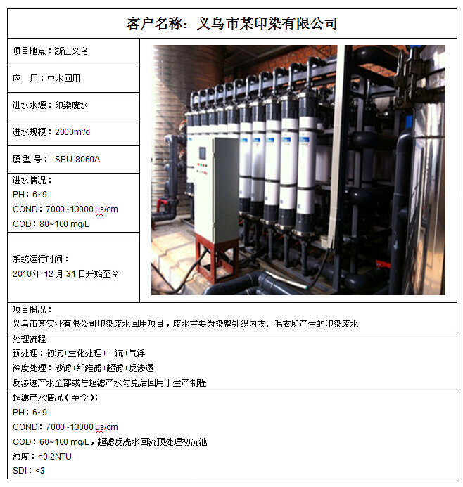 浙江義烏某印染廠2000噸/天 UF+RO回用工程