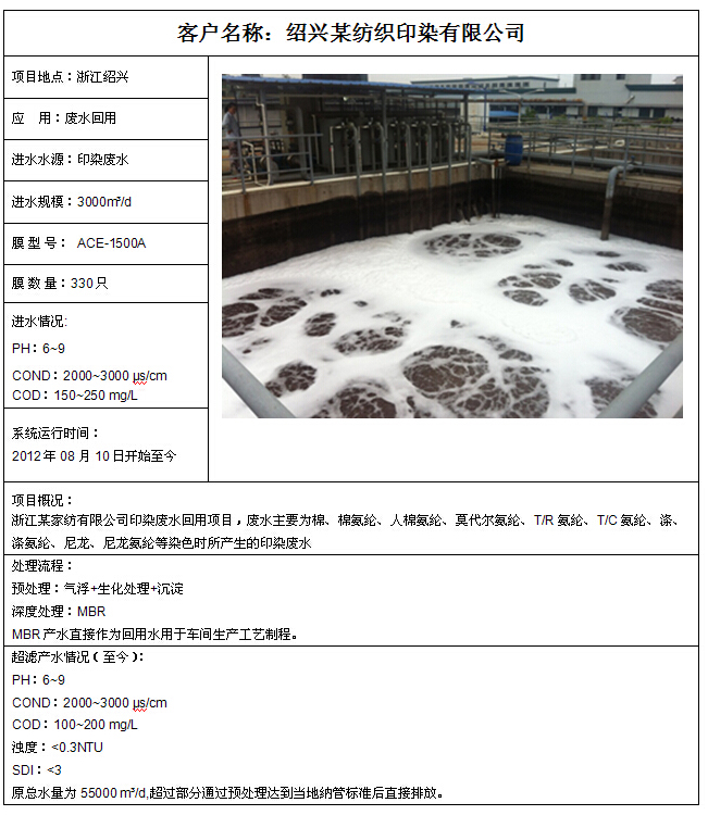 紹興某紡織印染廠3000T/D印染廢水MBR處理工程
