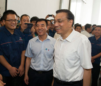 24日李克強總理考察景津環保,董事長姜桂廷(中)陪同介紹
