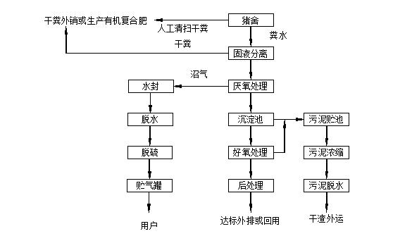 養(yǎng)牛養(yǎng)羊廢水經(jīng)過厭氧消化處理后,再采用氧化塘、土地處理系統(tǒng)或人工濕地等自然處理系統(tǒng)對厭氧消化液進(jìn)行后處理。適用于離城市較遠(yuǎn),經(jīng)濟(jì)欠發(fā)達(dá),氣溫較高,土地寬廣,地價較低、有灘涂、荒地、林地或低洼地可作廢水自然處理系統(tǒng)的地區(qū)。規(guī)模化豬場規(guī)模一般不能太大,對于豬場而言,一般年出欄在5萬頭以下為宜,以人工清糞為主,水沖為輔,沖洗水量中等。
